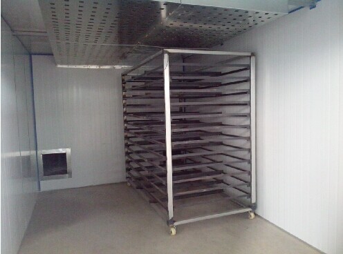 第四、降温的速度易慢不宜快,比较合理的降温速度为2-3分钟降低1度,如果以低于面条温度的15度的冷风进行快速冷却,或者在烘房出口处的室温与烘房内部的温度相差很大,使干燥后带着温度的面条出烘房,与温度低的空气接触而使面条表面的温度快速下降,则面条表面和中心的温度差就会很大。如果在这种状态下结束烘干工艺,经过一段时间就会面条变形。